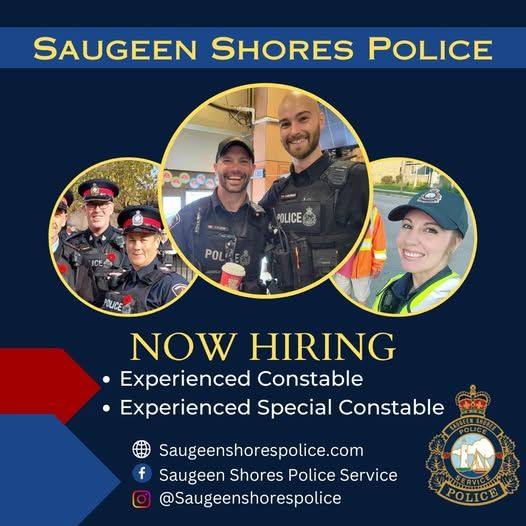 The Saugeen Shores Police Service is seeking applications from qualified experienced officers. Deadline for applications is July 25th, 2025.